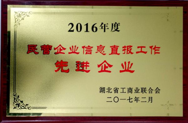 榮獲2016年度民營企業(yè)信息直報工作“先進企業(yè)”