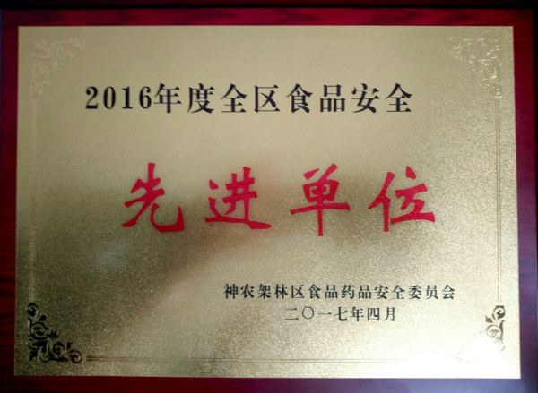 榮獲2016年度全區(qū)食品安全“先進單位”