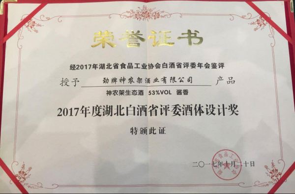 榮獲2017年度湖北白酒省評委酒體設計獎