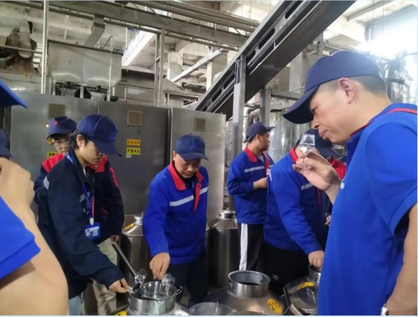 釀造生產(chǎn)作為一項(xiàng)經(jīng)驗(yàn)性很強(qiáng)的工作,對(duì)技能要求很高。特別是對(duì)溫度的把控、上甑出酒的技能、水分、酸度的控制要求較高。上甑蒸餾是固態(tài)法白酒生產(chǎn)中提升產(chǎn)質(zhì)產(chǎn)量的關(guān)鍵工序。為提升員工技能,促進(jìn)“比學(xué)趕幫超”的學(xué)習(xí)氛圍,黃燈芳時(shí)常鼓勵(lì)員工競(jìng)比技藝,提升員工的勞動(dòng)技能和實(shí)際操作能力。他組織車間員工進(jìn)行“上甑蒸餾比賽”、“攤凉加曲競(jìng)賽”,通過以賽促學(xué)、以賽促練發(fā)揮工匠精神,提升了釀造車間的酒質(zhì)、酒率,極大地降低生產(chǎn)成本,提高了生產(chǎn)效率,同時(shí)也提升了員工的操作技能和工作熱情。