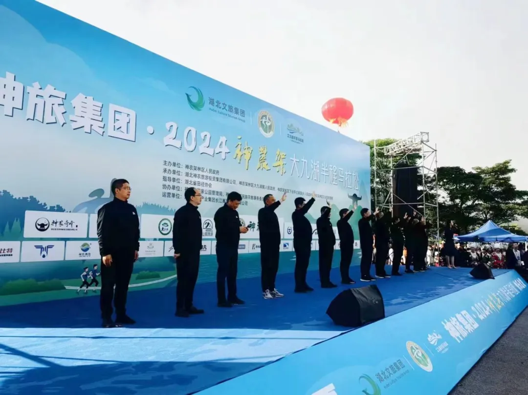 本次活動由神農架林區(qū)黨委書記、人大常委會主任馮偉;湖北文化旅游集團有限公司黨委副書記、總經理易三平;神農架林區(qū)政協(xié)主席、黨組書記王文華;湖北省體育局群眾體育處副處長胡偉;神農架林區(qū)黨委常委、宣傳部部長王常彬;神農架林區(qū)人大常委會黨組副書記、常務副主任周立春;神農架林區(qū)人民政府黨組成員、副區(qū)長唐軍;勁牌神農架酒業(yè)有限公司董事長劉庭林等領導共同出席啟動起跑儀式,并為參賽選手鳴槍發(fā)令。奧運冠軍廖輝擔任領跑嘉賓,與來自五湖四海的2500名選手共同起跑。