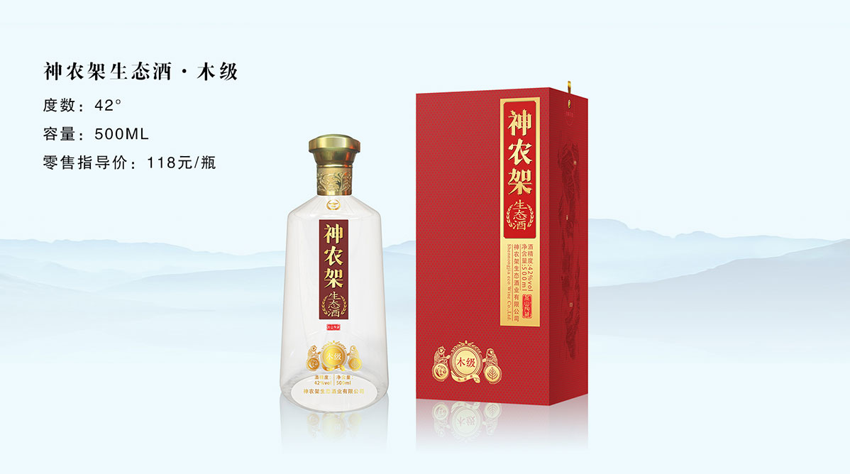 神農(nóng)架生態(tài)酒·木級 容量:500ml 建議零售價:118元/盒 產(chǎn)品介紹:選用優(yōu)質(zhì)濃香、醬香原酒,優(yōu)選中段原酒,低雜醇油含量,經(jīng)四年陶缸陳釀,按照黃金比例精心勾調(diào),酒體微黃透明,清雅諧調(diào),享受輕爽。 同時,融入苦蕎麥、松子、葛根、枸杞、山楂五味原料中的草本精華。